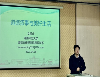在报告中,文贤庆教授从道德叙事的结构要素、道德叙事的美德展开、道德叙事指向美好生活等方面进行了深度解读。他强调,有秩序的叙事把生活呈现为为了实现内在本性而具有美德的生命主体的历时变化,在这一历时变化中,生命主体在具体的社会传统中实践出个体生命的自我统一性和自身融于其中的社会共享善,这种实践源于过去的传统,并指向良善的生活目标。
