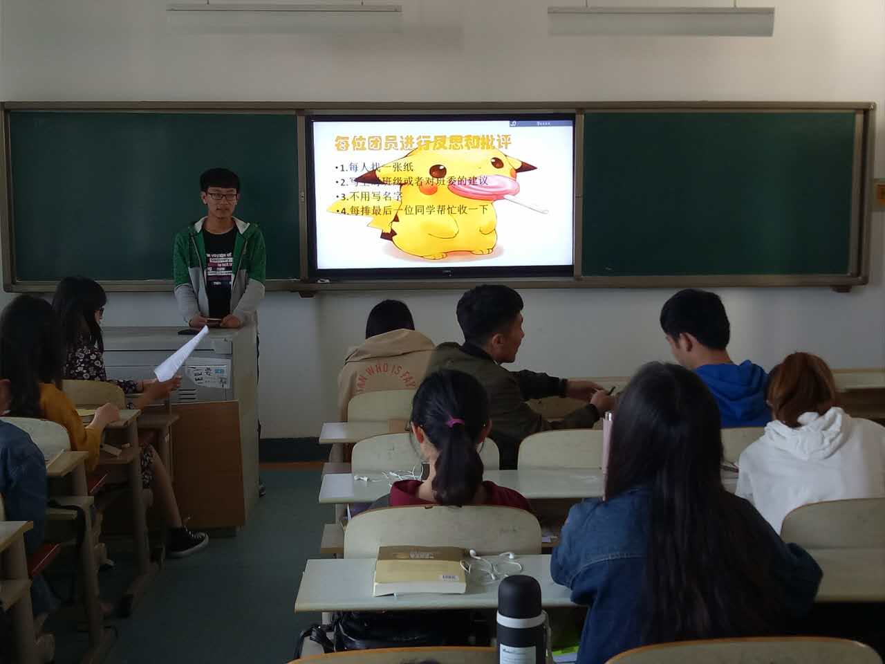 会上,刘旭平带头进行了自我批评与反思,并请其他团员进行评议,同学们对团干部的工作表现做出了中肯的评价,并指出不足。然后,团支部书记郭晓菡组织全体团员学习了“学习总书记讲话,做合格共青团员”的文件精神,并带头围绕勤学、修德、明辨、笃实四个方面进行对标学习与反思,与会团员围绕是否能下的苦功夫、求得真学问,是否能加强道德修、注重道德实践,是否能善于明辨是非、善于果断抉择,是否能扎扎实实干事、踏踏实实做人等方面进行了批评与自我批评,并提出整改措施。