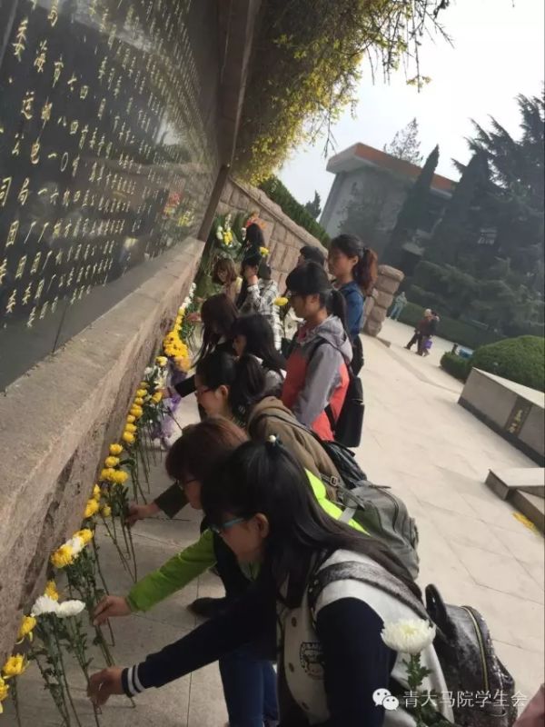 在徐海春老师的带领下,全体学生举行默哀仪式,沉痛悼念先烈们为革命事业抛头颅、洒热血的精神;礼毕,同学们列队于英雄墓碑前,一一为烈士献花。接下来,组织参观烈士纪念馆三大展区,回顾了从建党初期至今,青岛广大革命党员在各个岗位中的英勇表现。