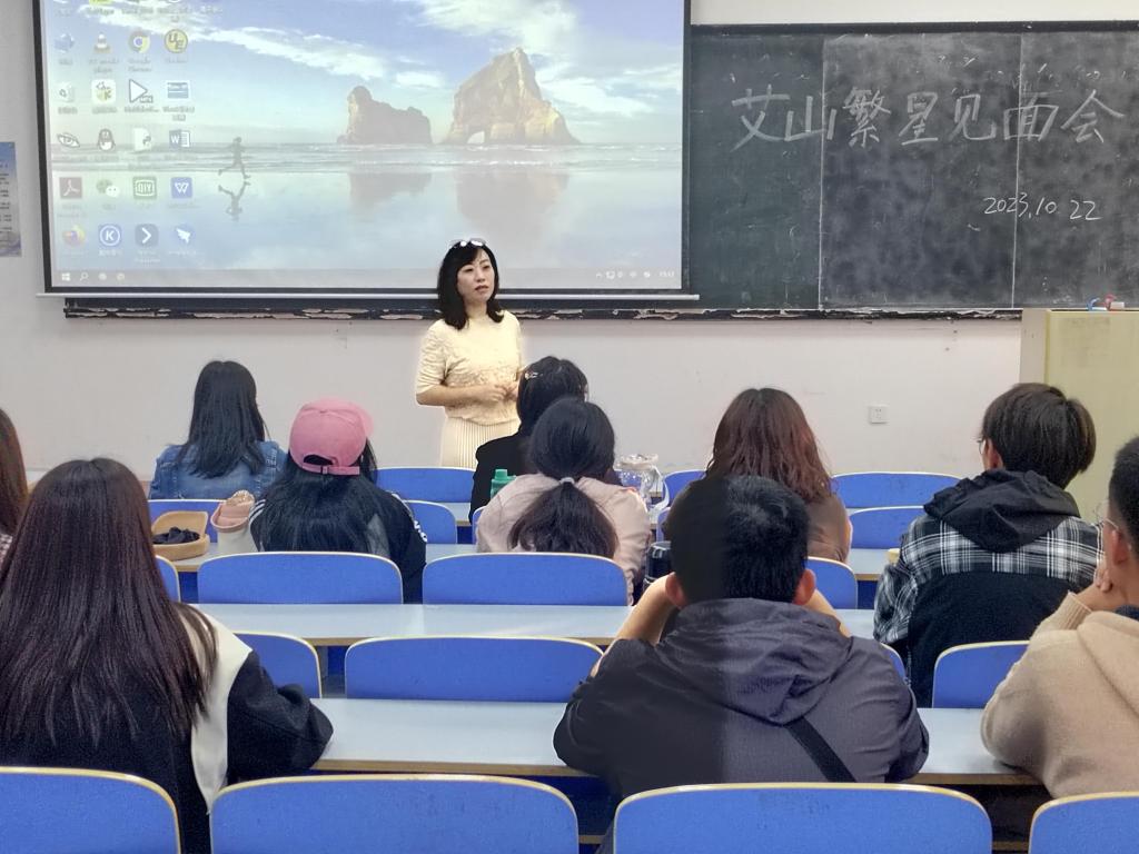 随后,艾山天文台官方研学负责人王老师以个人履历为引,鼓舞大学生“走出校园,走进社会”。她讲解了“艾山繁星”研习班下乡调研、项目创立等主要研习任务,以多项艾山天文台乡村振兴产品为例,为同学们进行项目研发提供思路。此外,王老师从三方面对同学们的调研活动提出要求,对把”艾山繁星“研习班建设成一支有纪律,有创新思想,团结有力的队伍展现了信心。