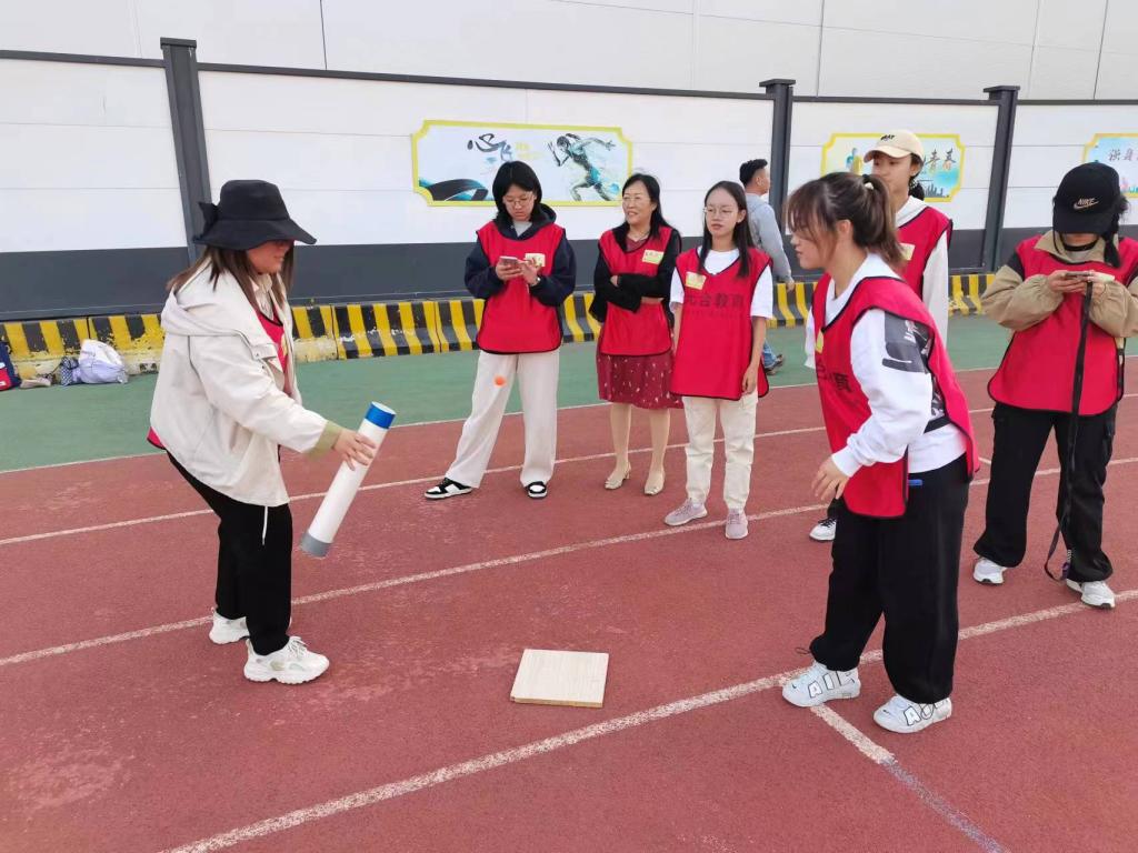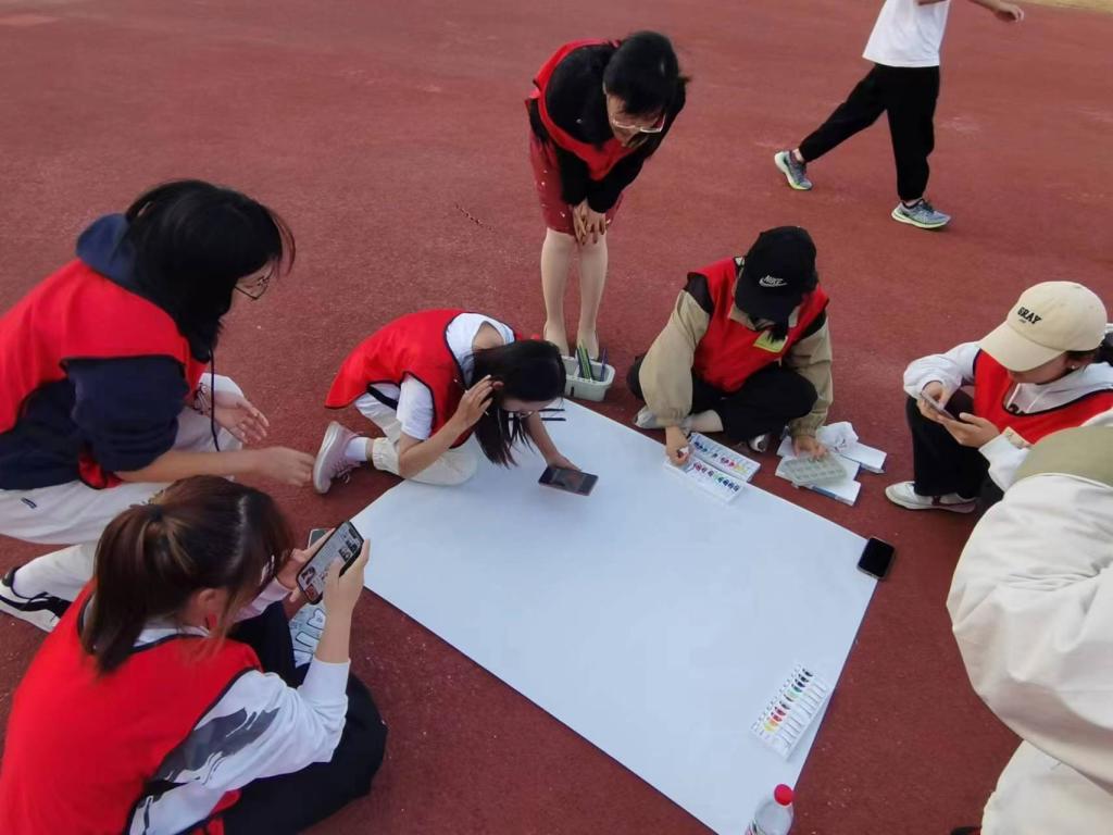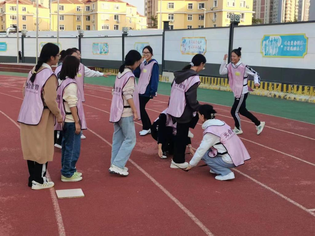 活动开始前,各位老师就早早来到了操场进行活动的准备工作,将同学们使用的游戏道具一一摆放整齐。下午1点30,同学们陆续到齐。签到结束后,石慧老师组织同学们拍摄形象照,帮助同学们快速认识彼此,也增加了同学们的自信心。