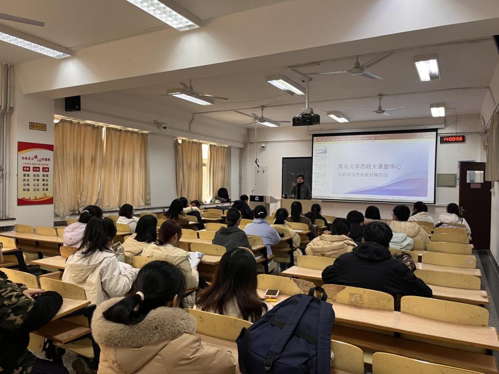 1、在校内招聘组建双语思政宣讲组,使用“青大思政大课堂创新双语思政教材”,使用中英双语将中国故事送进大中小学课堂和合作研习基地。