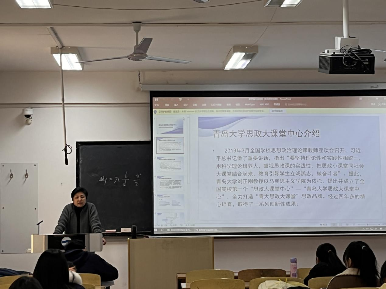 随后,青大思政大课堂张莉老师向大家介绍了创办研习班的想法与初心即双向互动,合作共建,致力于打造“校内外导师团 + 研习基地”相结合的综合型PBL学习平台,实现理论与实践密切联动,校内课堂与校外课堂全覆盖的大思政课堂。同学们能够增加社会阅历,提升英语水平。期待通过创新双语思政课的推进及项目团队的不懈努力,能够为思政教育注入新鲜的活力,通过英语这一载体,用优美的中国故事架起中国与世界的沟通之桥,让世界更好地认识中国。