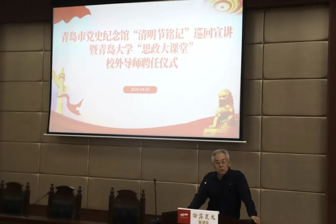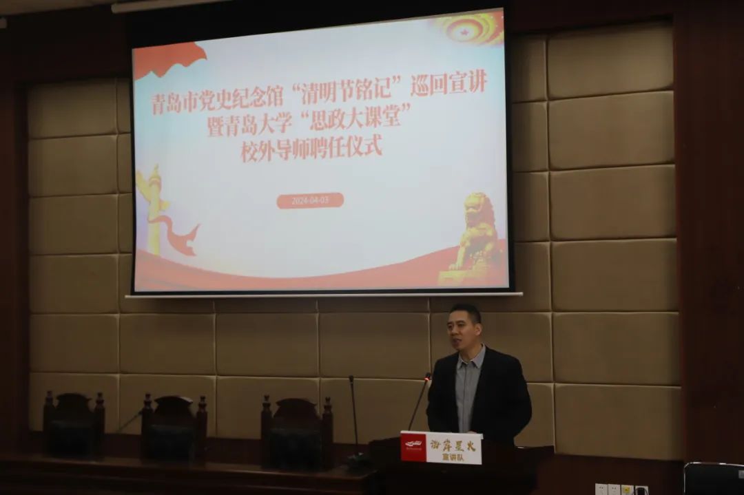 随后,青岛市党史纪念馆“海岸星火”宣讲队开展了“清明节铭记”巡回宣讲活动。宣讲队围绕青岛党史人物、抗美援朝历史、黄岛油库灭火英雄及道德模范李涌等主题展开深情宣讲,其动人的讲述令在场的师生们深受触动。同学们全神贯注地倾听,会场不时响起热烈的掌声!