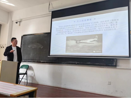 左昆老师通过PPT、视频演示等教学方式,从定义到分类,带领学员们全面了解无人机,深入浅出地讲解无人机相关知识。通过生动的案例和图片展示,让我们对无人机的特点、发展现状、分类、概述、定义和无人机系统有了更加直观、深入的了解;同时,老师还详细讲解了无人机的发展历史和行业现状以及无人机未来发展前景,穿插为我们播放了有关无人机机型以及应用的视频,学员们无一不震撼于先进的无人机技术,也看到了无人机发展的广阔前景和无限潜力。
