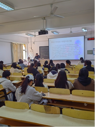 2024年3月24日上午,青大思政大课堂“用英语讲好中国故事”研习班第二次课程在博学楼105教室进行。参加本次会议的有青大思政大课堂导师张莉老师以及该研习班的同学们。