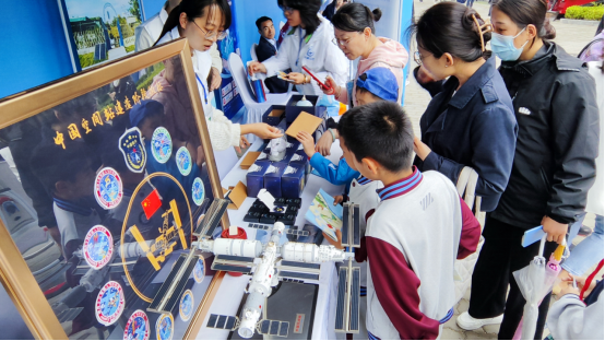 通过现场的望远镜,参展者们得以清晰地观测到远处的壮丽景观,仿佛近在眼前触手可得。同时,在现场展示的中国空间站工程模型也吸引了一群热爱天文的小朋友们的关注。志愿者和老师们对这些模型进行了生动而深入的讲解,让参与者们仿佛置身于太空航行的奇妙世界。这些讲解引发了越来越多人对太空探索和宇宙奥秘的浓厚兴趣,激发了他们进一步探索宇宙的渴望和热情,不仅传递了天文知识,也点燃了人们对宇宙无限神秘的向往与探索欲望。
