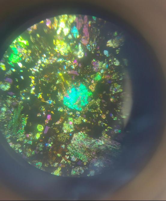 在艾山天文台的展位上,展示着一块来自2004年于城阳挖掘出的铁陨石,这块神秘的宇宙礼物深深吸引着参展者们的注意力。通过偏光显微镜,我们还可以看到球粒陨石切片中富含的五颜六色的矿物质元素。在不同的角度下进行观测,甚至会出现不同的斑斓色彩,这种独特的展示方式,使得参观者们不仅能够直观地看到陨石内部的结构,还能感受到宇宙的神秘与多样性。每一次角度的改变,都像是打开了宇宙的一个新窗口,让人们对未知世界充满了好奇和期待。这种体验不仅增加了参观者的兴趣,也激发了他们对天文学和宇宙学的探索欲望。