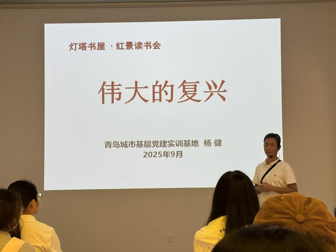 参观结束后,研习班成员移步灯塔书屋,杨健老师继续以“伟大的复兴”为主题展开专题党课。授课伊始,他先带领大家回顾近代以来世界列强对中国的侵略掠夺历史,以厚重的历史背景为切入点,为后续阐释民族复兴历程筑牢认知基础。随后,杨健老师围绕 “民族复兴” 主线,按清晰历史脉络逐层讲解:从 “复兴的孕育 —— 中国共产党的诞生”,到 “复兴的起点 —— 中华人民共和国的建立”,再到 “复兴的转折 —— 改革开放的推进”,最后聚焦 “复兴的加速度 —— 中国特色社会主义进入新时代”。这场党课以严谨的逻辑与深刻的解读,不仅让成员们深化了对中华民族伟大复兴历史逻辑、理论逻辑与实践逻辑的认知,更让大家清晰意识到:身处新时代,每个人都是民族复兴征程中不可或缺的参与者、建设者与推动者。