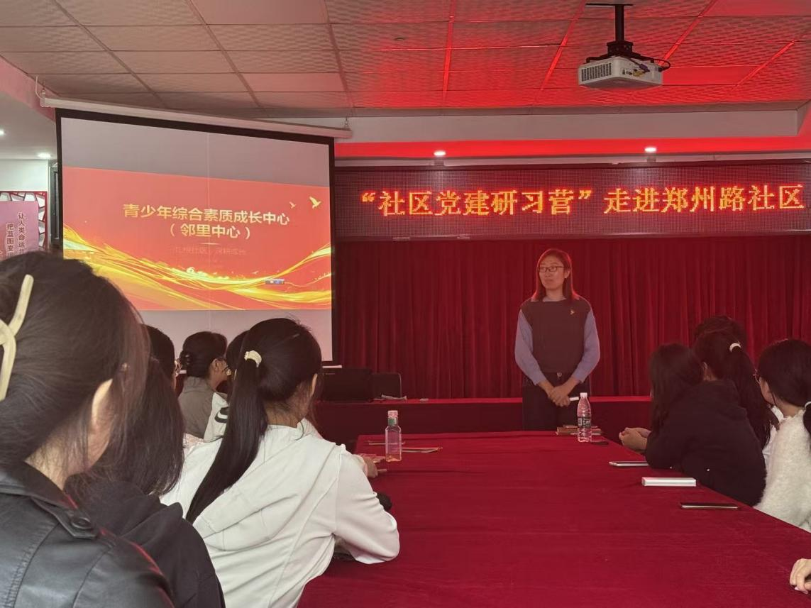 王艳芳书记首先带领研习班成员走进郑州路社区党群服务中心,介绍了社区的特殊构成——作为涵盖老旧物业小区、筒子楼院、待拆迁平房与工业园区的综合性社区,虽管理难度大,却实现了“麻雀虽小,五脏俱全”的治理格局。随后,成员们实地参观了便民服务区域、依托“绿循环”项目打造的环保博物馆“菜果果博物馆”(居民可参与厨余堆肥、酵素制作,同步推进垃圾分类与自然教育),以及“欢喜琴社”等文化空间。这些场景直观展现出社区以“12345党建+”模式为核心,整合“红色联盟”共建单位与社会组织资源,既解决居民“急难愁盼”,又深耕环保与文化领域,打造治理有序的幸福家园。
