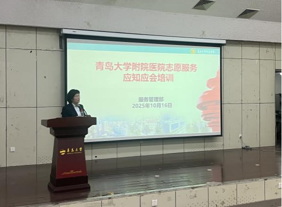 培训会上,朱永洁导师系统介绍了青大附院的百年发展历程及其作为三甲医院在学科、服务与社会责任方面的综合实力,并围绕志愿服务的基本规范、岗位职责与人文关怀理念作了重点阐释,强调志愿者应树立“以心暖心”的服务意识,在服务中传递温度与专业。