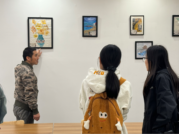 郭老师与大家分享了他的艺术感悟:“用可视化的作品连接情感,让爱好成为生命的陪伴。为热爱留一片天地,才能在喧嚣中寻得内心的丰盈。”真挚的话语引发在场同学的深刻共鸣。