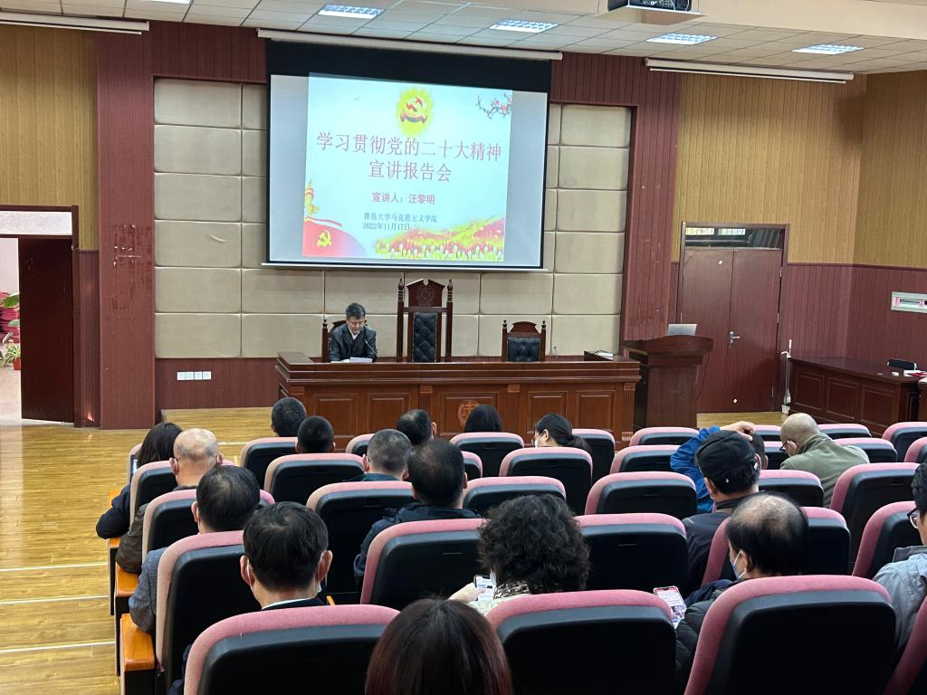 11月17日下午,校党委副书记汪黎明在笃行楼到Ky开元集团作党的二十大精神宣讲报告,Ky开元集团院长尉利工主持报告会,全体教师参加报告会。