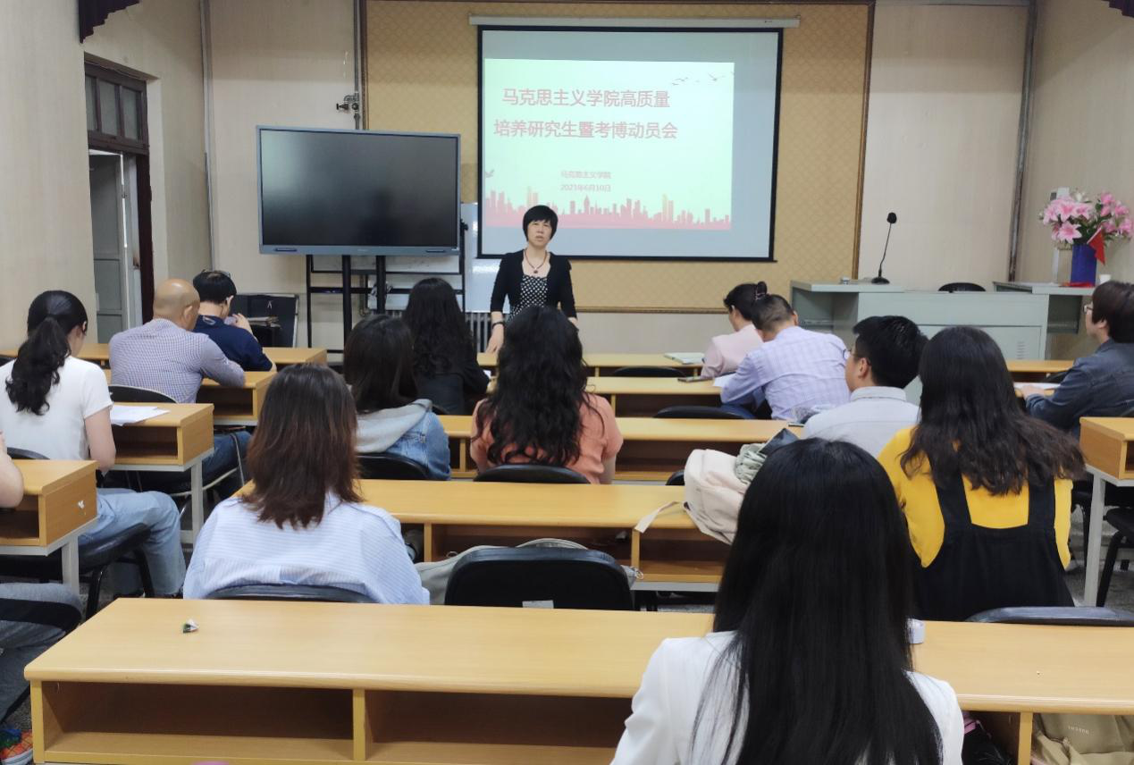 首先,郭金鸿院长向全体师生传达了学校研究生教育大会精神,以“如何进行高质量的研究生教育”为主题展开,深刻剖析了研究生教育过程中存在的问题,分析了国家社会发展对马克思主义学科人才的需求,和同学们成长成才的需求,表示要加强学院的制度建设,强化责任担当,以提高学院的研究生教育质量,对全体师生提出了更高要求和殷切期望。