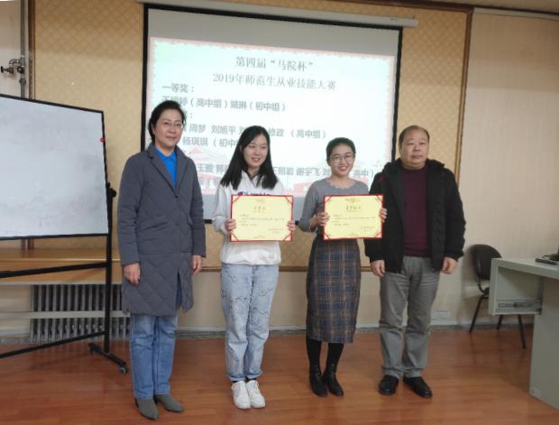 第四届“马院杯”师范生从业技能大赛,获奖情况如下,一等奖:于婷婷(高中组),姚琳(初中组);二等奖:纪攀凤 周梦、刘旭平、刘翠艳、修政(高中组),崔煜、杨琪琪(初中组);三等奖:任江珊、江玉雅、郭晓菡、张新宇、王照岩、谢宇飞、刘彩凤(高中),崔凯、郑家瑜(初中)。