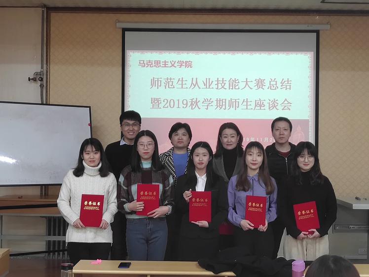 首先,姜文明副院长宣布第四届“马院杯”师范生从业技能大赛获奖情况、第七届山东省高校师范生从业技能大赛选手获奖情况。