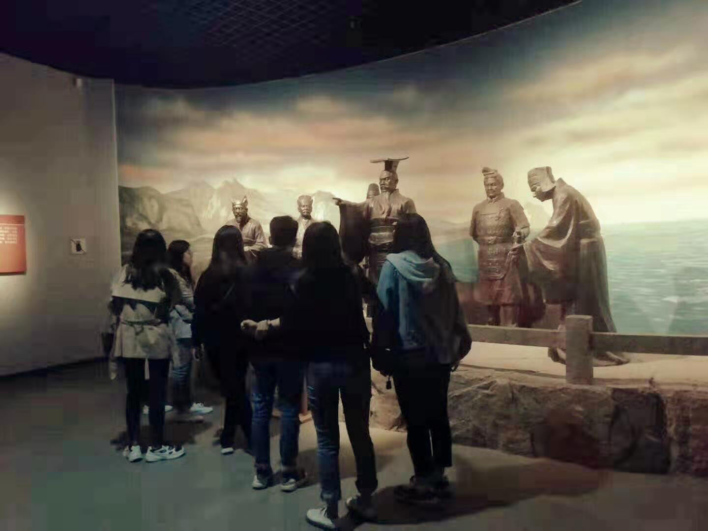 青岛市博物馆是国家一级博物馆和全国古籍重点保护单位,馆藏文物包括书法、绘画、陶瓷器、铜器、玉器、钱币、玺印、甲骨、竹木牙角器等三十余个门类十多万件,其中书法、陶瓷器、玉器、钱币为馆藏特色。馆内还收藏有4万余件青岛历史发展各阶段留下来的文物资料,反映了青岛建置以来城市的发展,是全面了解青岛历史的重要场所。在《青岛史话——青岛地区历史陈列》的上部《古韵悠长》展厅中,展览共分为:“东夷文明溯源”、“齐国经济重镇”、“秦皇汉武巡疆”、“北方千载古港”、“道教鼎盛崂山”、“明清海防要地”六个单元。通过对于这些单元传世珍贵文物的了解,同学们共同回味了上起新石器时期,下迄青岛建置前青岛地区古代历史发展的基本脉络及诸多重大历史事件。