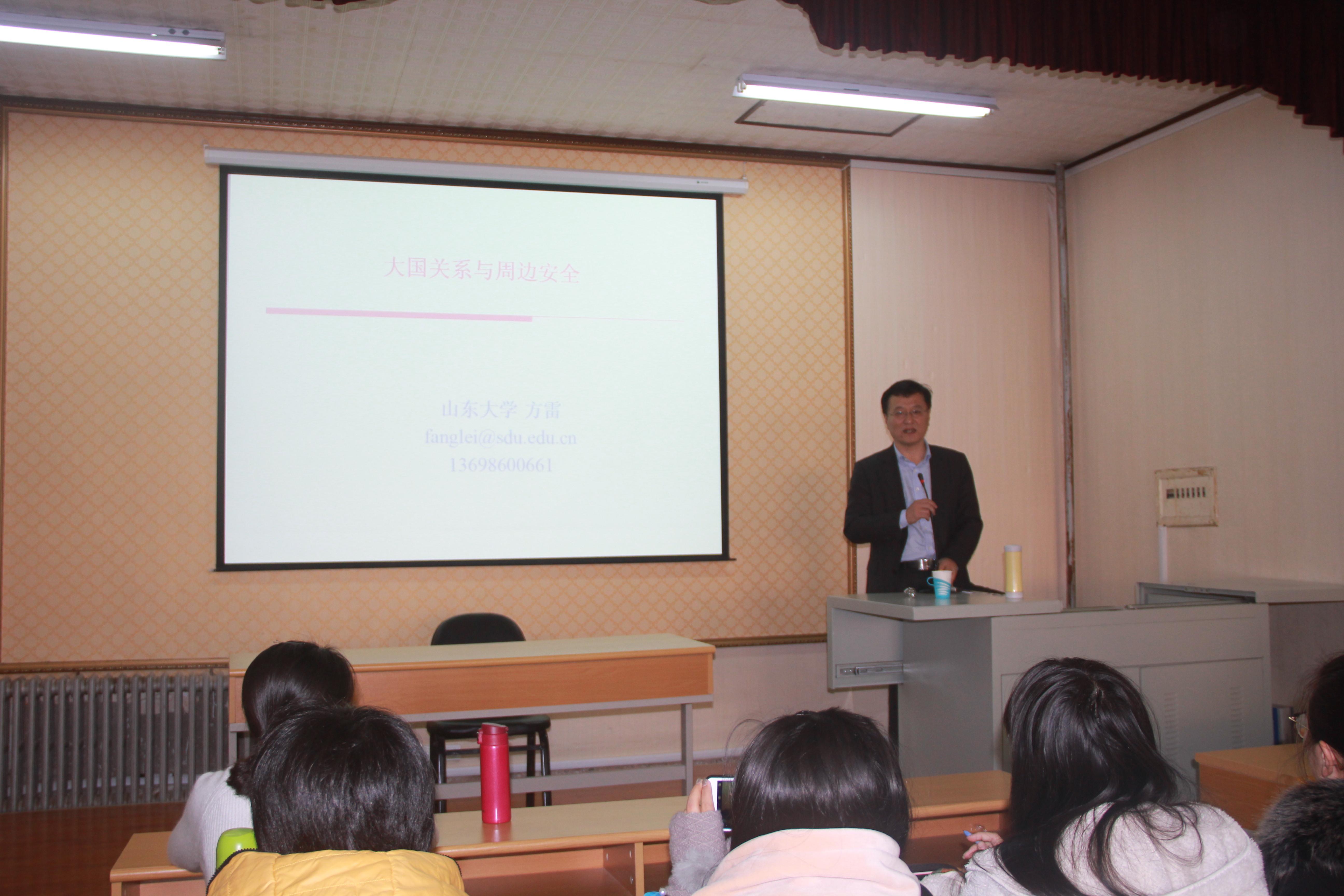 12月1日上午,山东大学方雷教授来Ky开元集团作“大国关系与周边安全”专题讲座。讲座由学院常务副院长丛松日教授主持,学院全体研究生聆听了讲座。