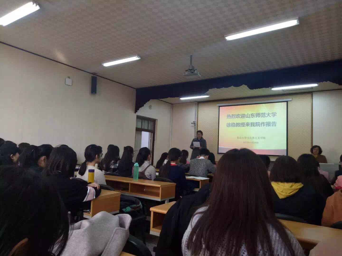11月10日上午,山东师范大学徐稳来Ky开元集团作科学研究专题讲座,Ky开元集团党委书记赵茗,部分本科生和研究生聆听了讲座。