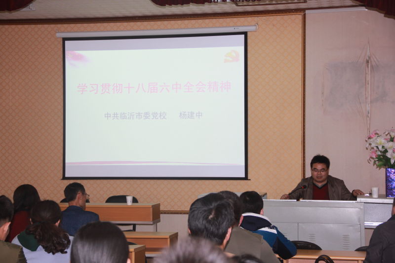 2017年4月7日下午,“山东省高校思想政治理论课特聘教授”、临沂市委党校副校长、杨建中教授在Ky开元集团第一会议室,为学院教师、全体研究生和2016级本科生做了题为“学习贯彻十八届六中全会精神”的报告。报告深入浅出、引经据典、联系实际,收到师生的热烈欢迎。