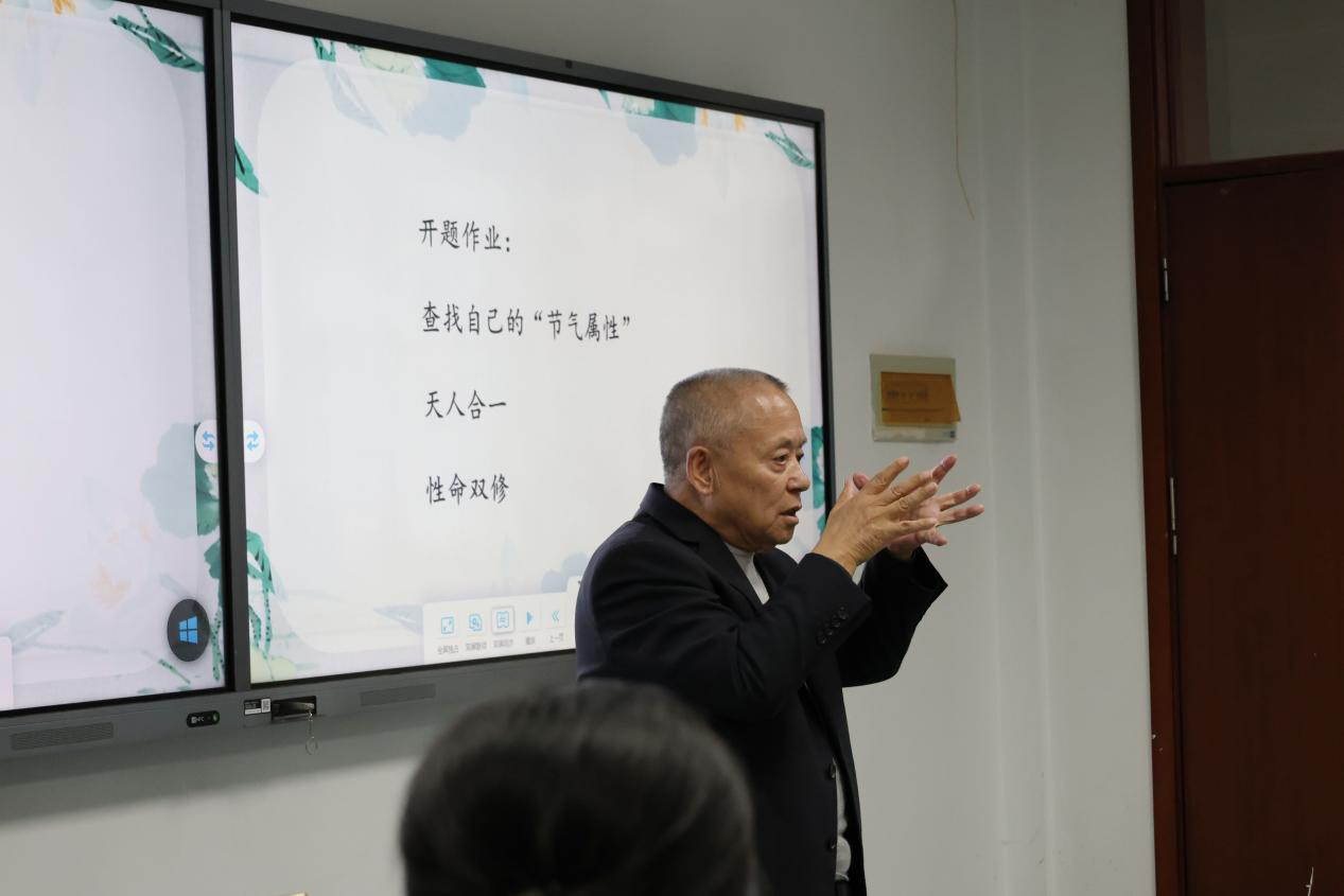 徐教授在和博士生们交流中,生动地向大家介绍了二十四节气在中国传统文化中的重要作用。并以此为引,细致地分享了一堂短暂但丰富多彩的传统文化课。鼓舞博士生更好地树立文化观念和领会中华民族几千年智慧的精髓,从精神层面上建立更强的民族文化自信心,领会研习班的精神和意义,有品质地完成研习班的目标和任务。他同时对研习班的前景和未来向同学们提出了殷切的期望。