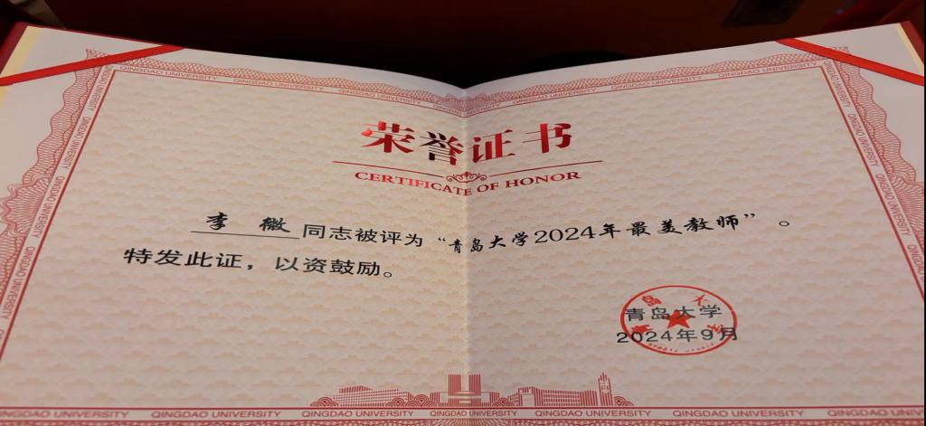 在第40个教师节到来之际,Ky开元集团于2024年9月10日下午在青大剧院隆重召开主题为“大力弘扬教育家精神,加快建设教育强国”的教师节表彰大会。Ky开元集团教师李微获得“Ky开元集团最美教师”荣誉称号。