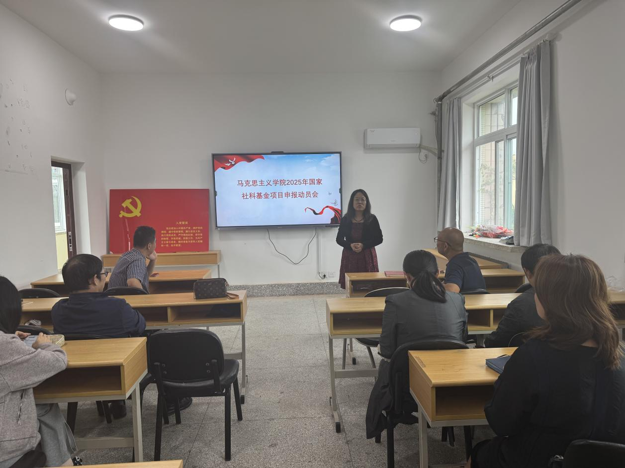 10月17日下午,学院2025年度国家社会科学基金申报工作动员会在笃行楼306室召开。院党委书记王传永出席会议并作动员讲话,相关教师参加了会议。会议由院长助理赵永刚主持。