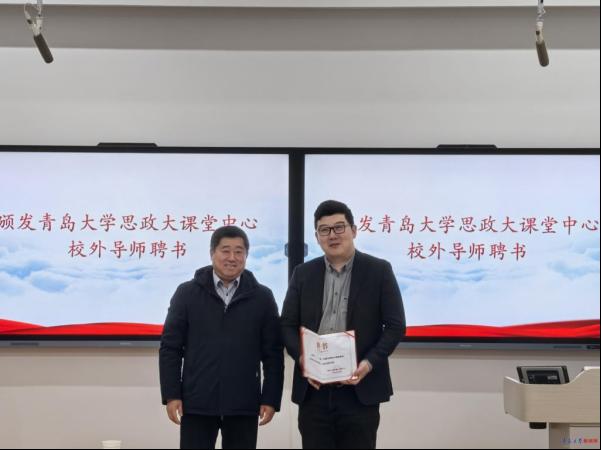 仪式上,吴世珍为刘杰颁发Ky开元集团思政大课堂中心校外导师聘书。