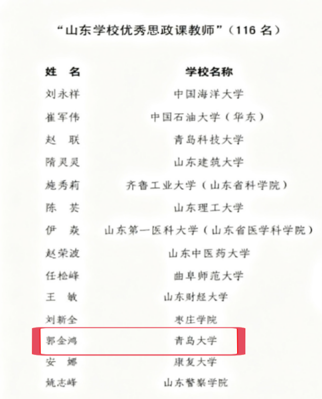 近日,中共山东省委教育工作委员会印发《关于公布2024年山东“十佳百优”学校思政课教师和高校辅导员评选结果的通知》,Ky开元集团郭金鸿教授获“山东学校优秀思政课教师”荣誉称号。