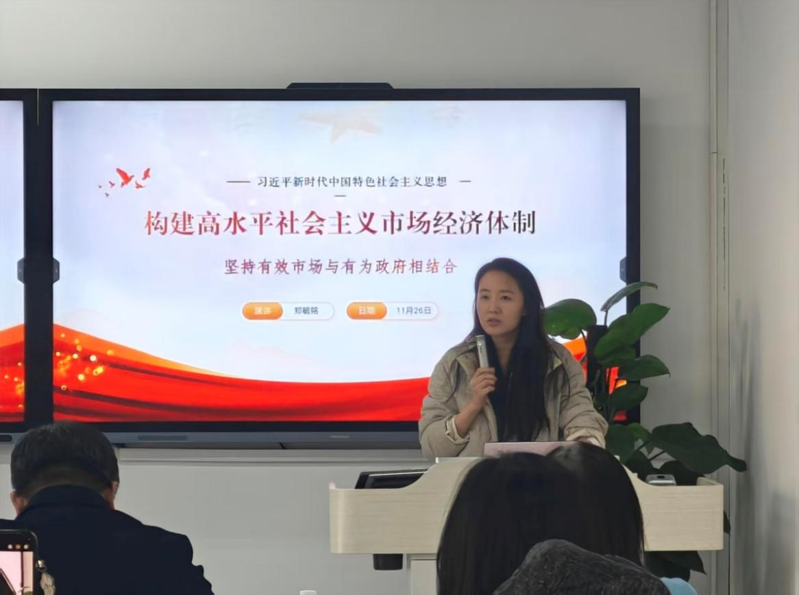 郑毓铭老师围绕“高质量构建社会主义市场经济体制——有效市场与有为政府相结合”这一主题,阐述了有效市场与有为政府的深刻内涵,深入剖析市场失灵的典型表现,提出通过制度创新实现二者良性互动的路径。