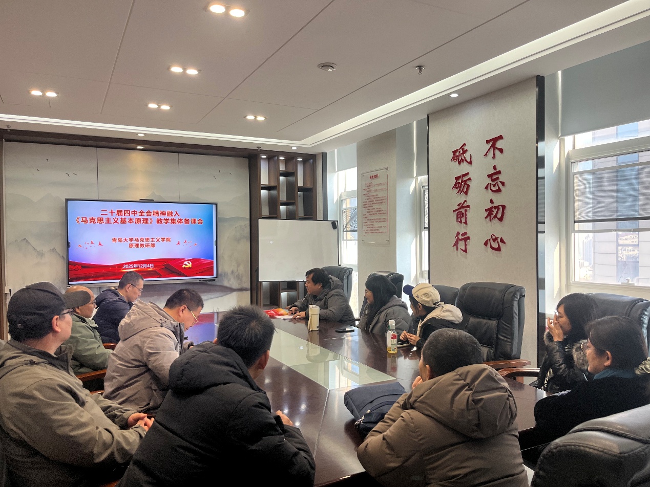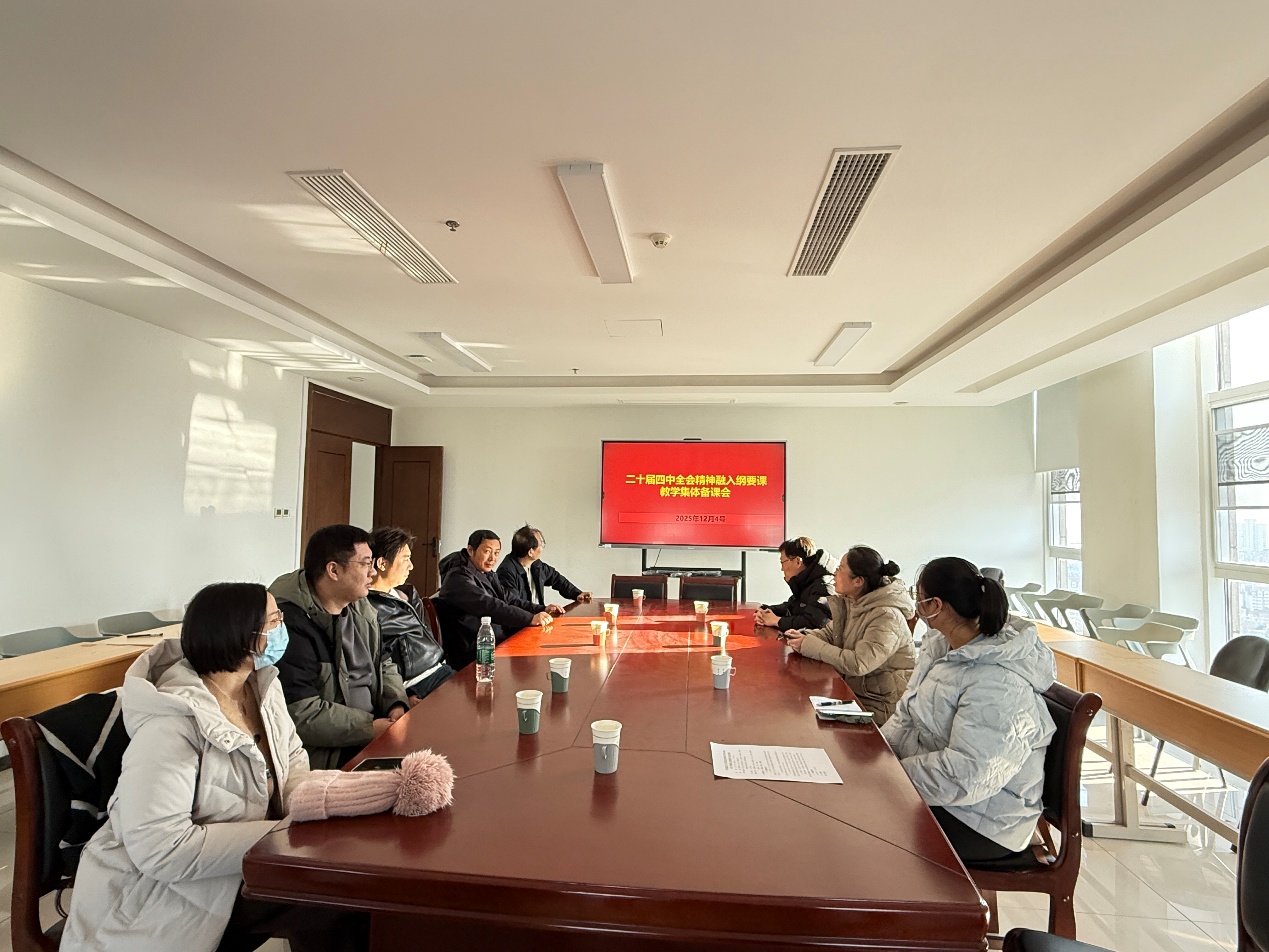为深入学习贯彻党的二十届四中全会精神,及时、准确、全面地将全会作出的重大决策部署和理论创新成果有机融入思想政治理论课教学,切实提升思政课的思想性、理论性和针对性,近日,学院组织各教研部分别召开专题集体备课会,集中研讨全会精神“三进”工作。