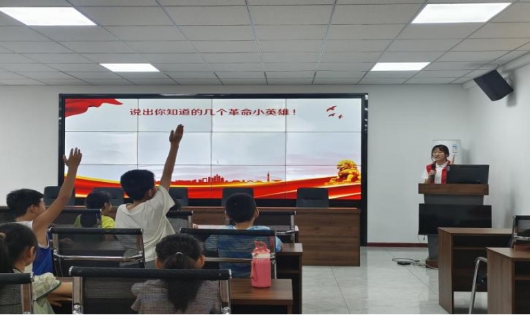 8月9日,宣讲团来到永安街道郑家社区暑期公益托管班,围绕“习近平新时代中国特色社会主义思想·少年英雄小故事”主题开展了一场别开生面的互动式宣讲。宣讲团成员李宣姿结合习近平总书记关于“学党史、用党史、讲好党史故事,培育德智体美劳全面发展的社会主义建设者和接班人”的重要论述和要求,围绕四个抗战时期的革命小英雄,向孩子们讲述了《小兵张嘎》、《红孩子》、《鸡毛信》、《草原上的小姐妹》等少年英雄机智勇敢、不畏困难、坚强不屈的感人故事。宣讲伊始,李宣姿以“自己喜欢或认识的少年英雄”发起提问,激起孩子们的热情互动;通过观看小英雄故事精彩电影片段,引导孩子们踊跃发表观点,表达对英雄的崇高敬意和其优秀精神品质的理解。孩子们纷纷表示要认真学习,以实际行动来继承和发扬红色精神,努力成长为一名有知识、有品德、有作为的新时代好少年,为实现中华民族伟大复兴的中国梦贡献自己的力量。