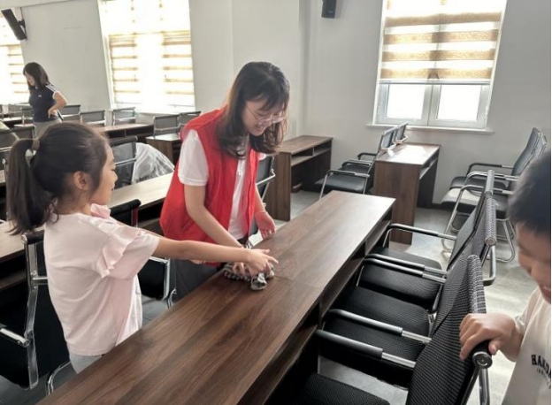 宣讲活动结束后,宣讲团成员和托管班的孩子们来到新时代文明实践站和会议室,共同进行了卫生大扫除,对地面、会议桌、窗台等进行了擦拭、清理,把桌椅摆放得井然有序。活动过程中,大家分工合作、各司其职、身体力行,认真清扫每一个角落,让活动场所变得干净整洁、焕然一新。在此过程中,宣讲团成员和孩子们进行了交流互动,让他们体悟劳动的价值和意义;认识到团队协作的重要性,在实践中学会合作分工,做到事半功倍。