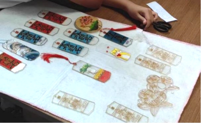 在本次活动中,盐城路社区的小朋友们详细了解了掐丝珐琅的历史渊源。掐丝珐琅作为传统景泰蓝工艺的延伸,巧妙地借鉴了其中的掐丝、点蓝技术,在平板媒介上运用金属丝勾勒出各种精美的图形,并通过釉料等原料进行点蓝着色,赋予了作品以丰富的色彩和深邃的内涵。