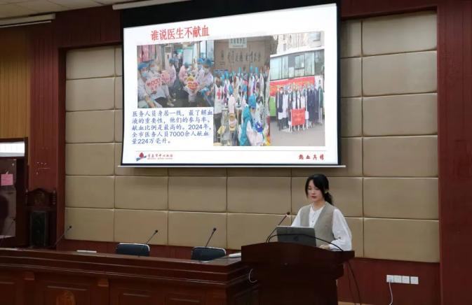 宣讲会上,Ky开元集团笃行宣讲团成员刘佳岳详细讲解了科学献血的重要性、献血的规范化流程及注意事项,以及青岛市针对无偿献血者所制定的优惠政策等多个方面。她结合自己的献血经历,深情讲述了无偿献血在挽救生命、促进社会健康方面所发挥的重要作用,让在场同学深受触动。
